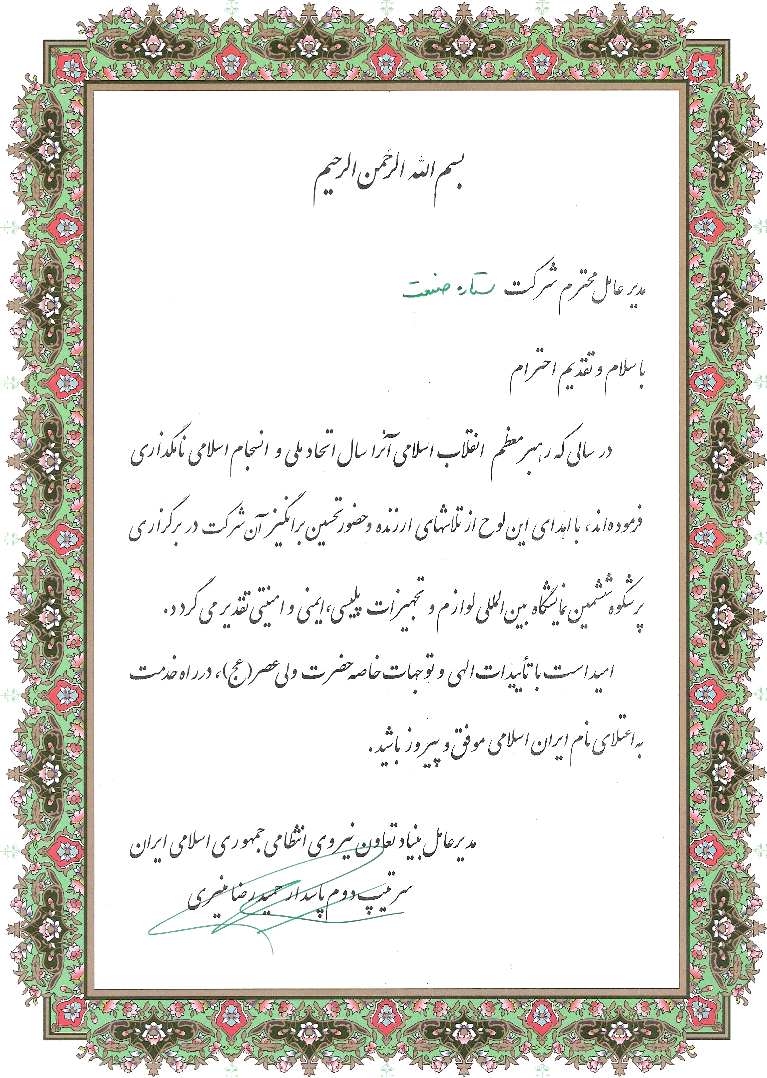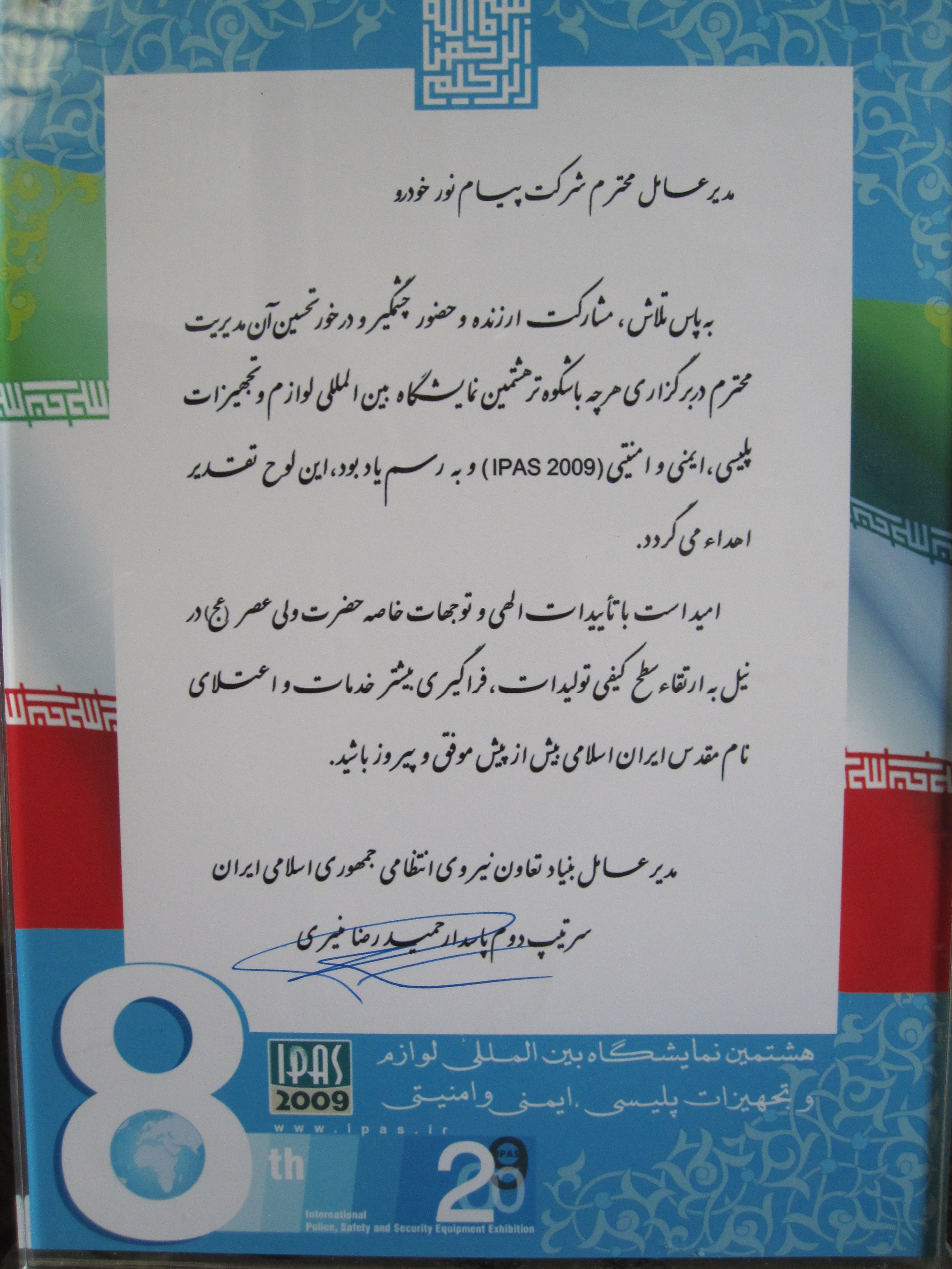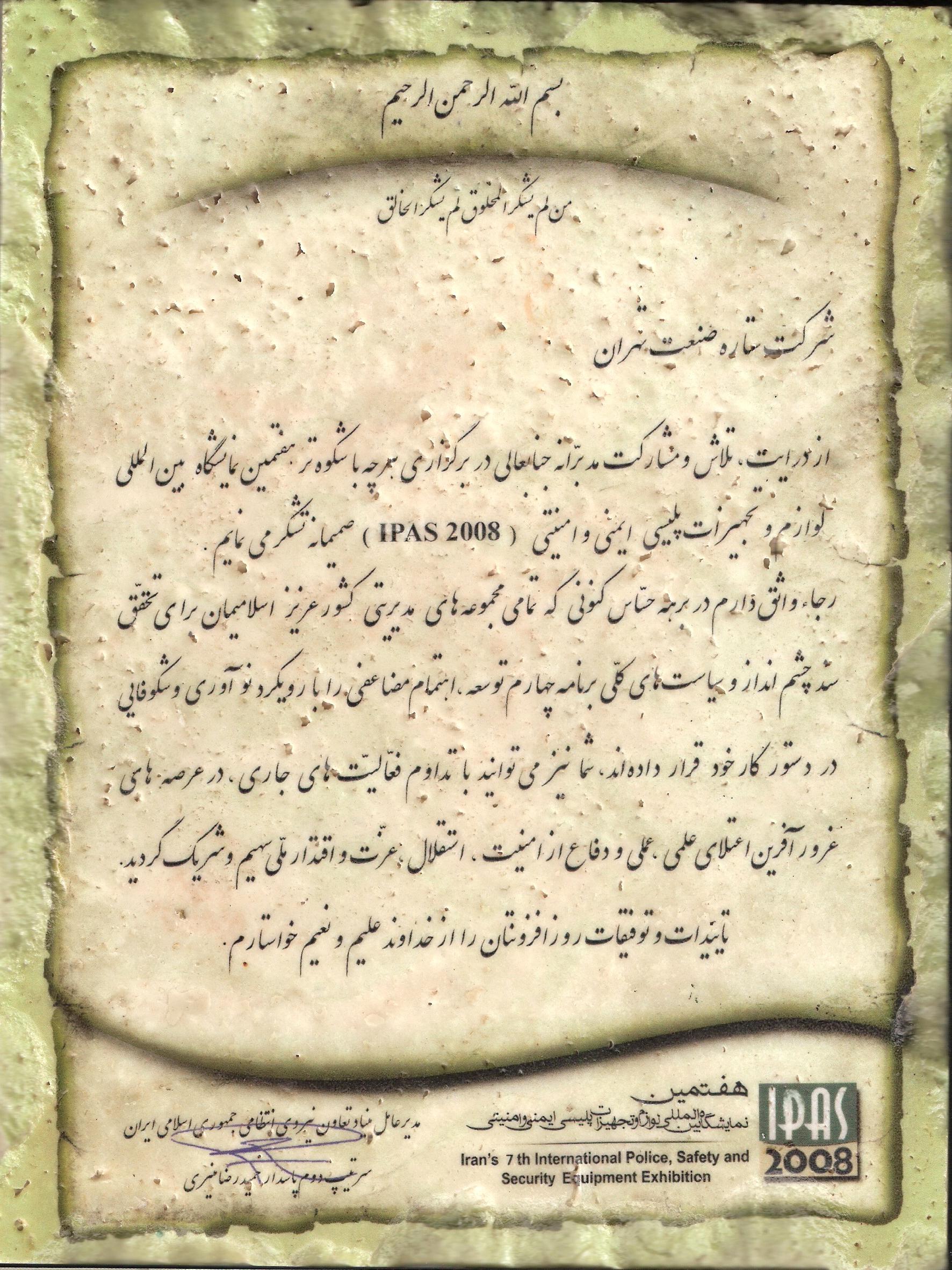 تقدیرنامه ها و رزومه کارخانه چراغ گردان پیام نور